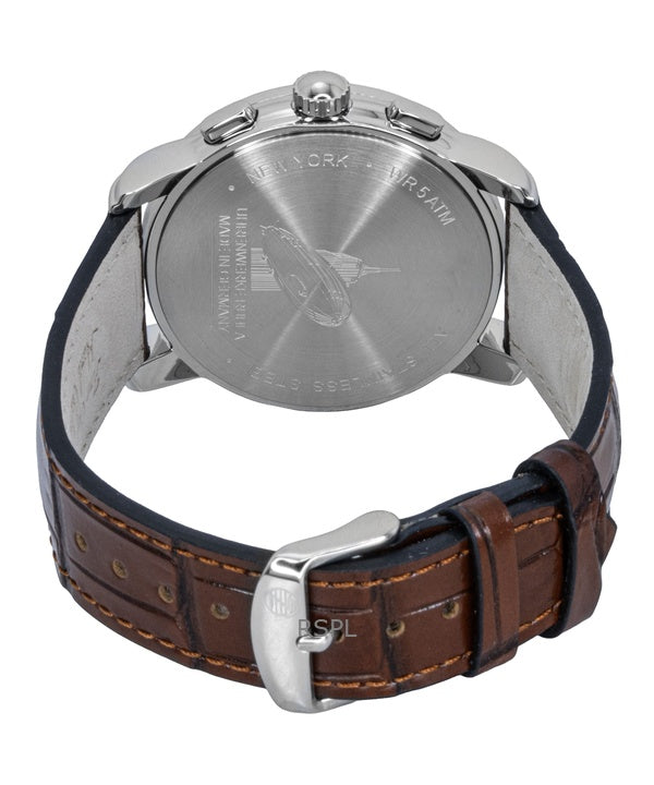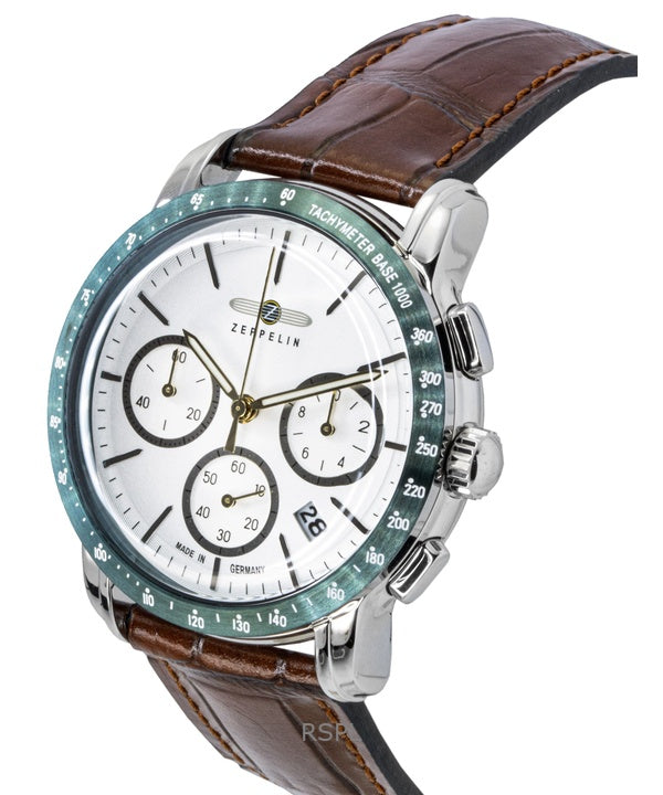 Montre chronographe Zeppelin New York pour homme, bracelet en cuir, cadran blanc, quartz, 88784