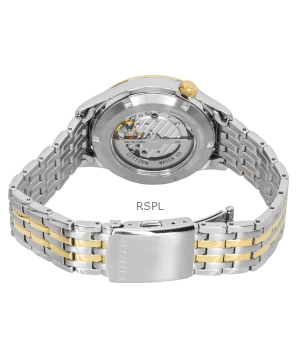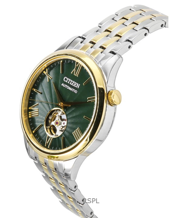 Montre Citizen bicolore en acier inoxydable avec cadran vert et bracelet en cuir NH9134-83X pour homme