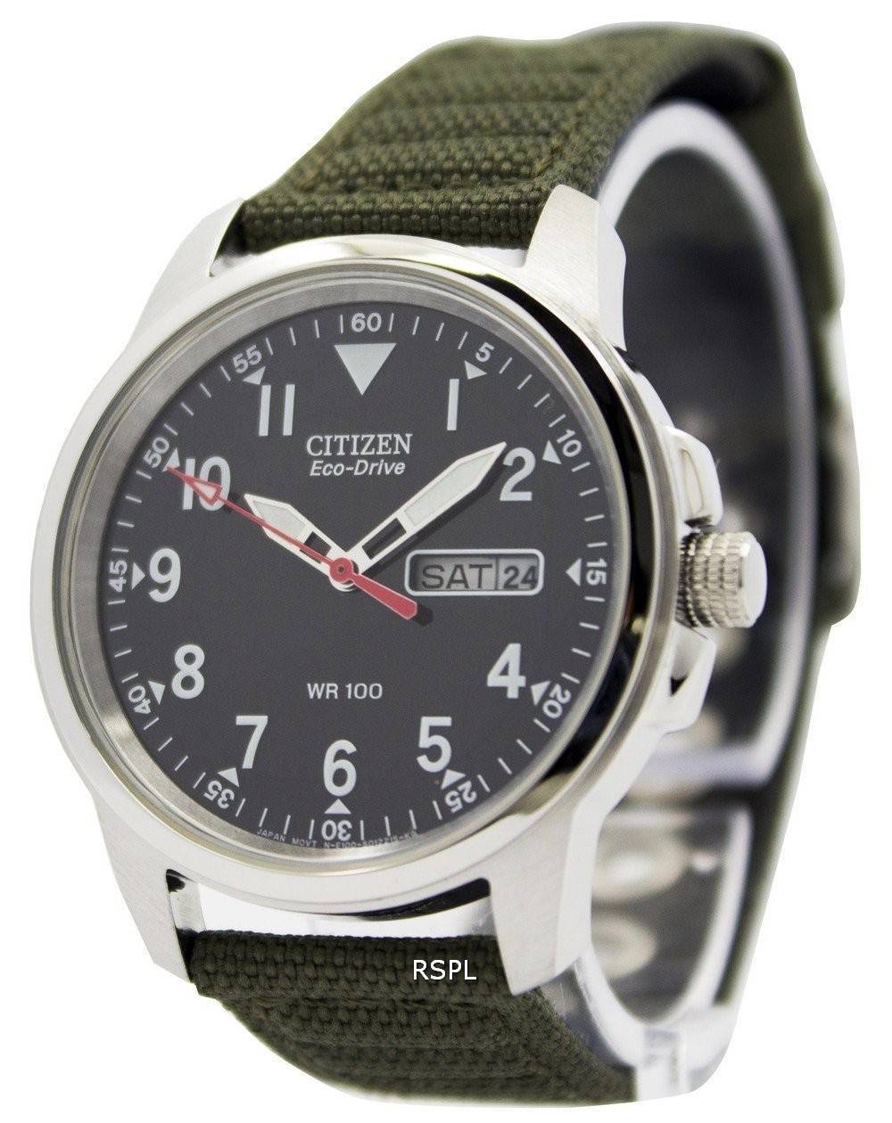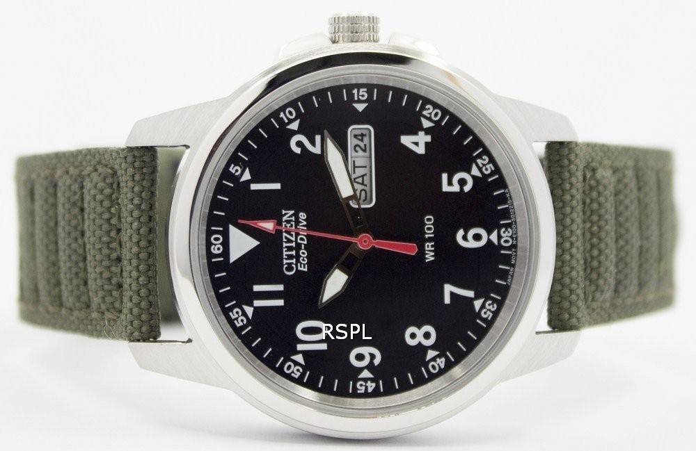 Montre Citizen Eco-Drive vert toile sangle 100M BM8180-03E hommes