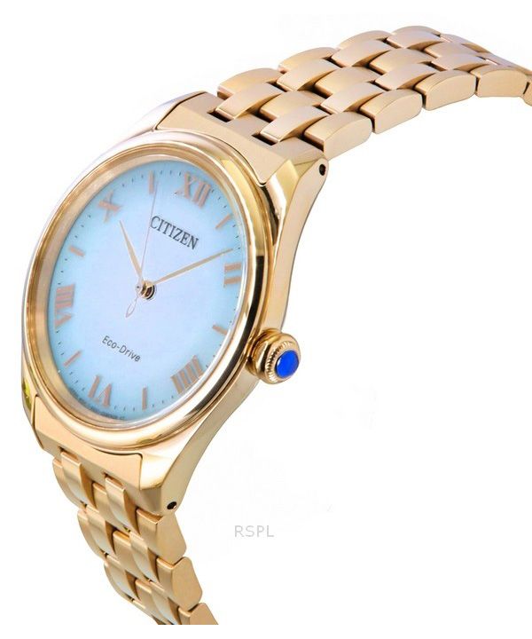 Montre Citizen L en acier inoxydable ton or rose avec cadran vert clair Eco-Drive EM1143-81X pour femme