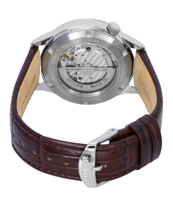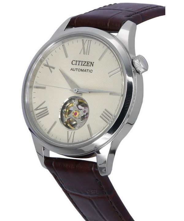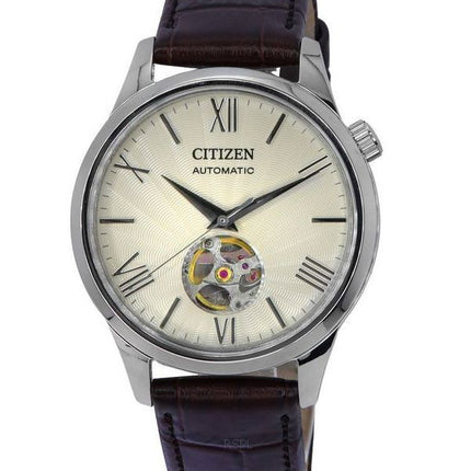 Montre Citizen NH9130-17A pour homme avec bracelet en cuir de veau ouvert et cadran ivoire