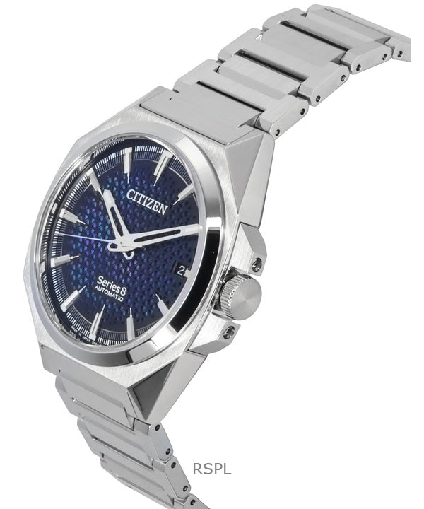 Montre Citizen Série 8 en acier inoxydable, cadran bleu et noir, automatique, NA1010-84X, 100 m