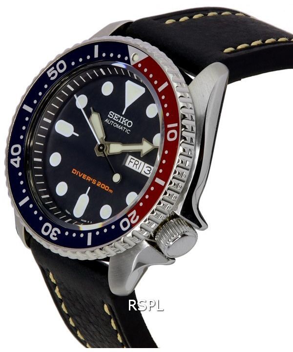 Montre cuir noir SKX009K1-LS2 200M masculin de plongée Seiko automatique