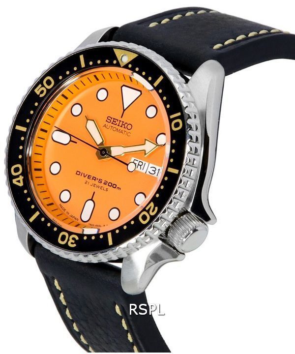 Montre cuir noir SKX011J1-LS2 200M masculin de plongée Seiko automatique