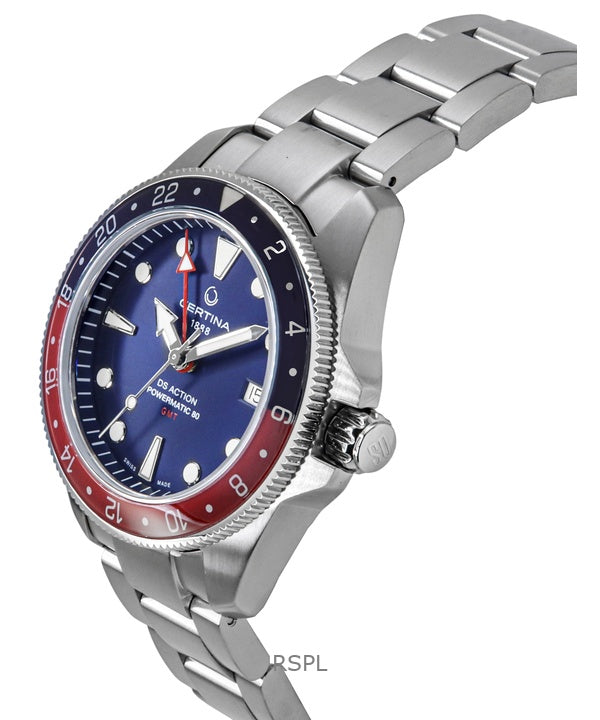 Montre de plongée automatique Certina DS Action GMT en acier inoxydable avec cadran bleu C032.929.11.041.00 pour homme, 200 m