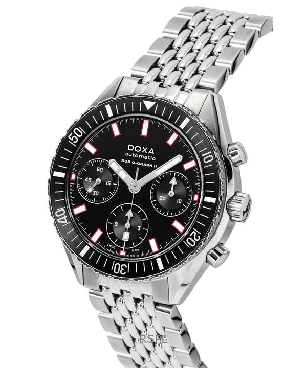 Montre de plongée automatique Doxa Sub 200 C-Graph II Sharkhunter pour homme, cadran noir, 797.10.101.10, 200 m, avec bracelet supplémentaire