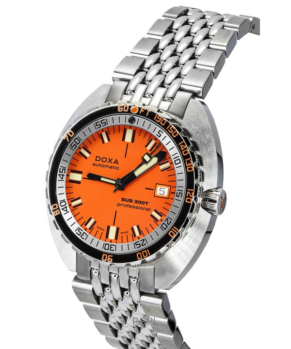 Montre de plongée automatique Doxa SUB 300T Aristera Professional à cadran orange 840.10.351.10 1200 m pour homme avec bracelet supplémentaire