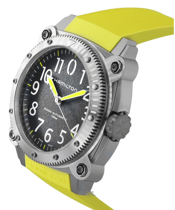 Montre de plongée automatique Hamilton Khaki Navy Belowzero pour homme, bracelet en caoutchouc, cadran gris, H78535380, 1000 m