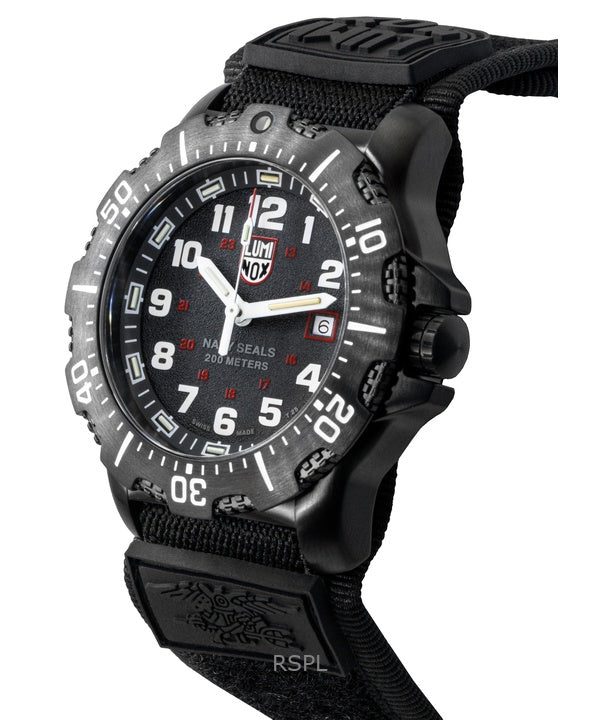 Montre de plongée à quartz pour homme Luminox Navy Seal, bracelet en caoutchouc, cadran noir, bracelet en caoutchouc, 200 m, avec coffret cadeau
