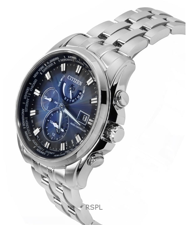 Montre de plongée radiocommandée Citizen Eco-Drive pour homme, cadran bleu, acier inoxydable, AT9031-52L, 200 m