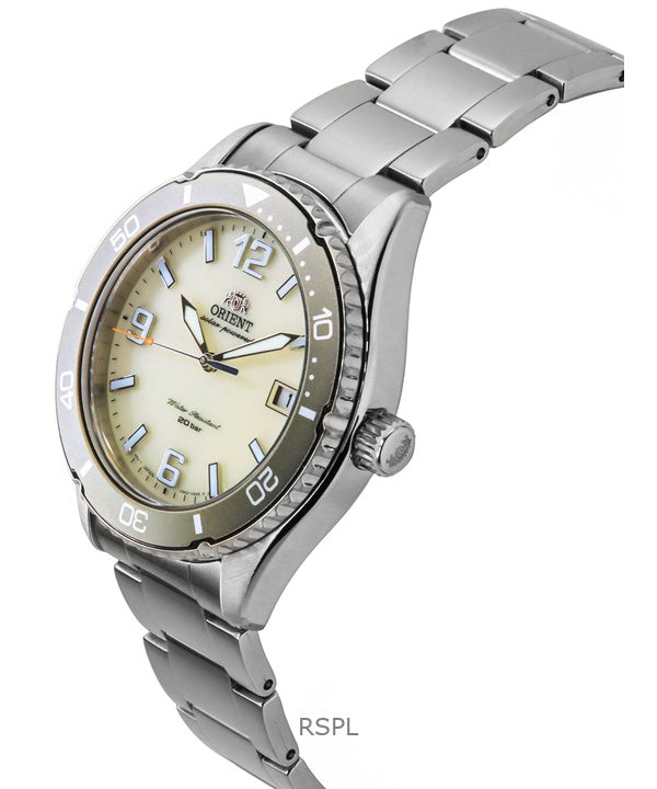 Montre de plongée solaire Orient Mako III en acier inoxydable avec cadran ivoire RA-WJ0003S pour homme, 200 m