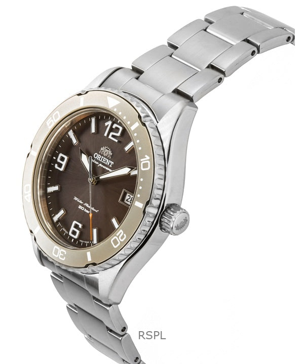 Montre de plongée solaire Orient Mako III en acier inoxydable avec cadran marron RA-WJ0004Y pour homme, 200 m