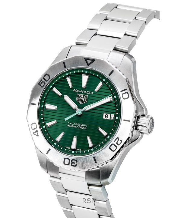 Montre de plongée Tag Heuer Aquaracer Solargraph en acier inoxydable, cadran vert, quartz, 200 m, WBP1115.BA0000