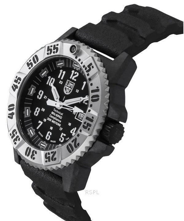Montre de plongée à quartz pour homme Luminox MIL-SPEC XL.3351.1.SET 300 m avec bracelet supplémentaire et cadran noir en caoutc
