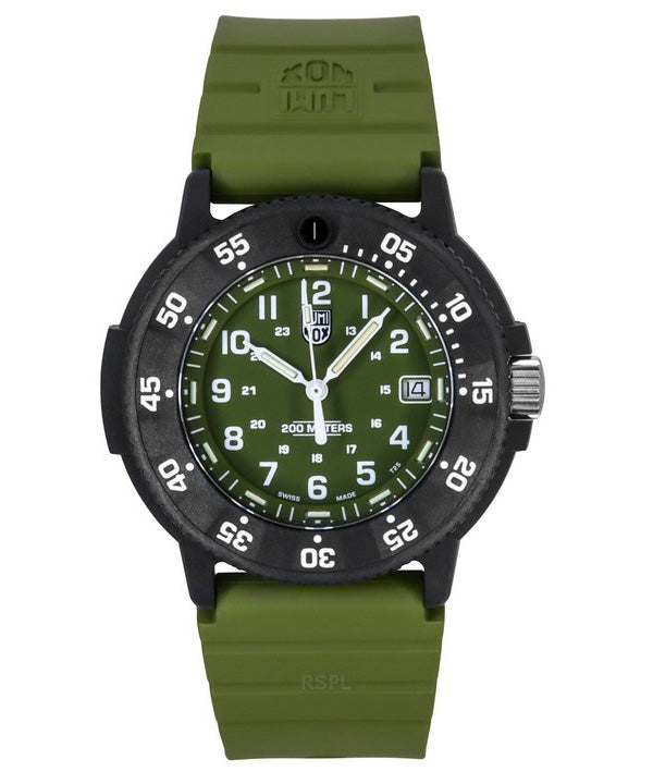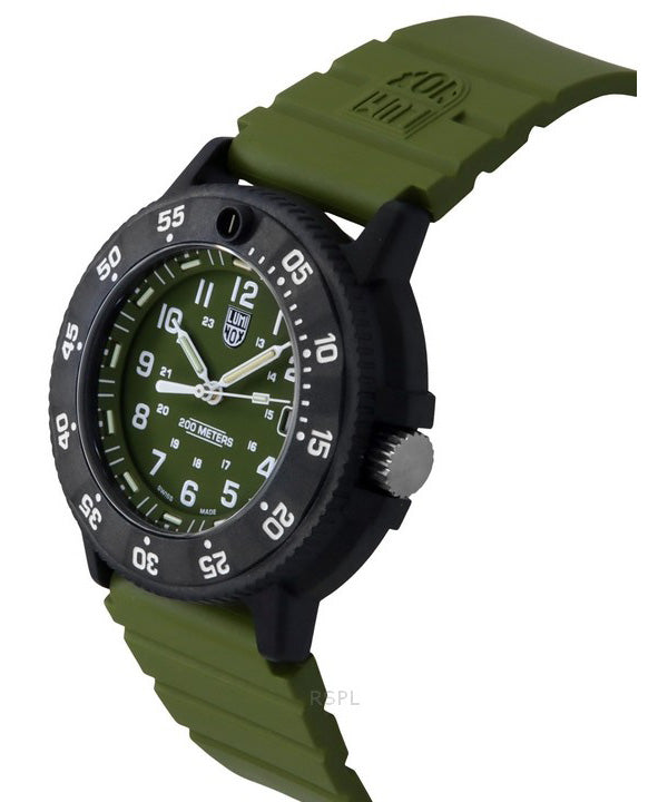 Montre de plongée à quartz pour homme Luminox Original Navy Seal XS.3013.EVO.S 200 m avec bracelet en caoutchouc et cadran vert