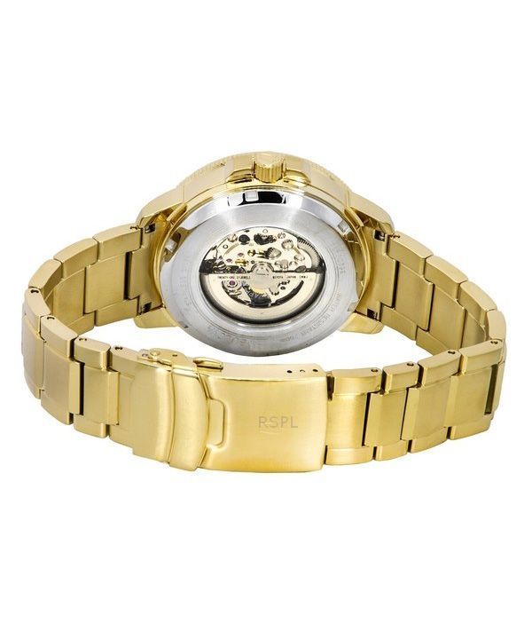 Montre de plongée automatique Bulova Marine Star en acier inoxydable doré avec cadran noir 97A174 200M pour homme
