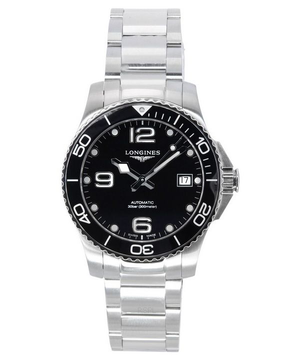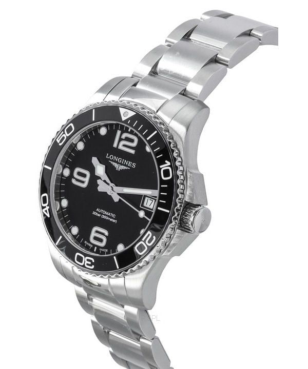 Montre de plongée automatique Longines HydroConquest en acier inoxydable avec cadran noir L3.780.4.56.6 300M pour homme