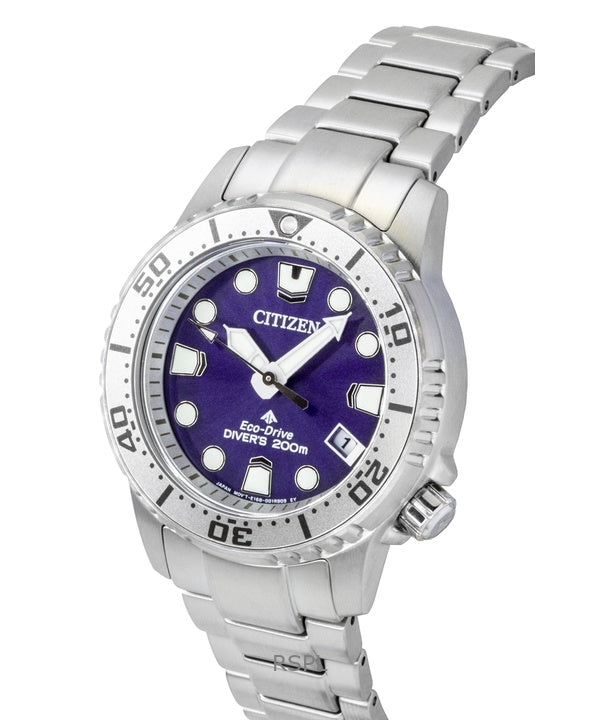 Montre femme Citizen Promaster Dive en acier inoxydable, cadran violet, Eco-Drive, étanche à 200 m (EO2027-50X).