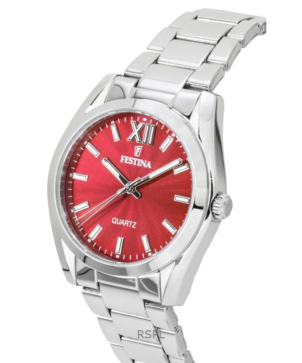 Montre femme Festina Alegria en acier inoxydable, cadran rouge, quartz F20622-B