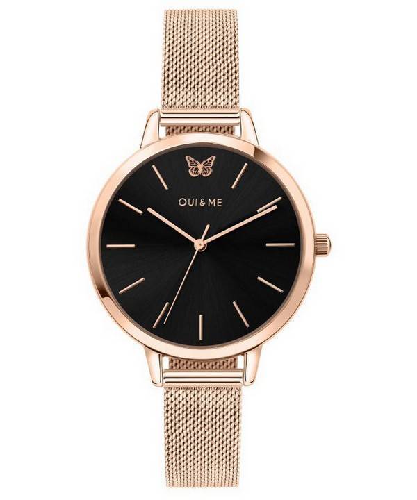 Montre Femme Oui &, Me Amourette Cadran Noir Or Rose Acier Inoxydable Quartz ME010015 Montre Femme