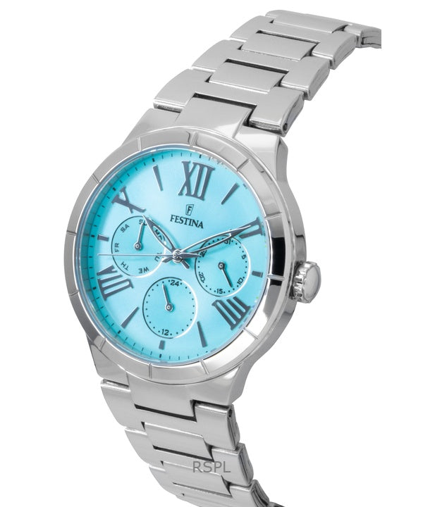Montre Festina Boyfriend pour femme, multifonction, acier inoxydable, cadran bleu glacier, quartz, F16716-4