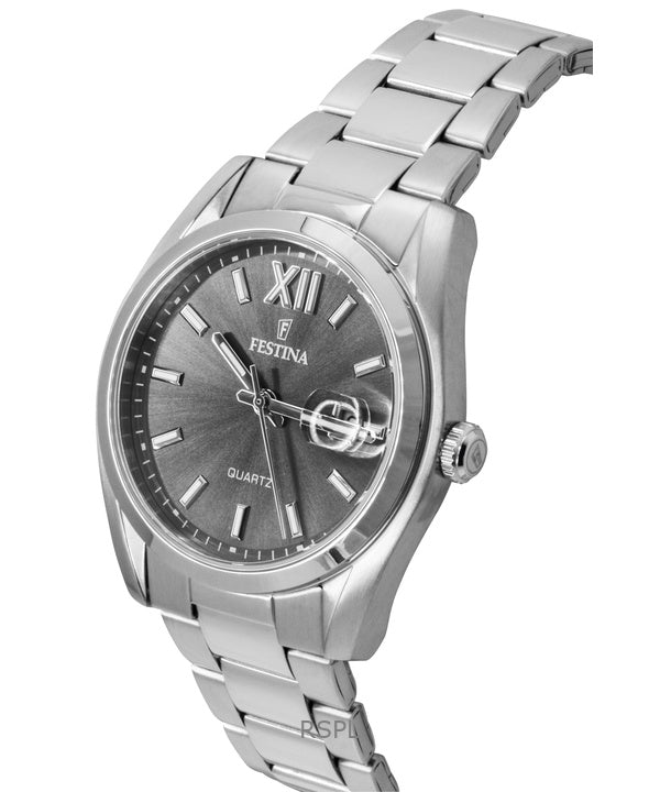 Montre Festina Classic pour homme, acier inoxydable, cadran gris, quartz, F20707-3