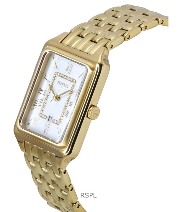 Montre Fossil Raquel pour femme en acier inoxydable doré avec cadran en nacre blanche ES5304
