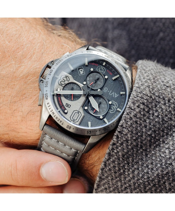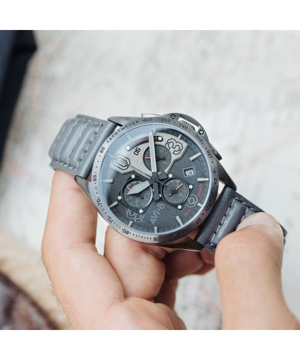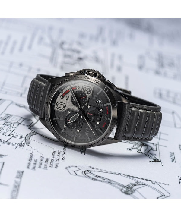 Montre Homme AVI-8 P-51 Mustang Blakeslee Chronographe Brevet Bracelet Cuir Cadran Noir Quartz AV-4077-03