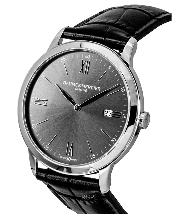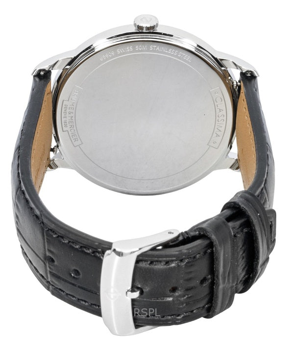 Montre homme Baume & Mercier Classima, bracelet cuir, cadran noir, quartz M0A10416