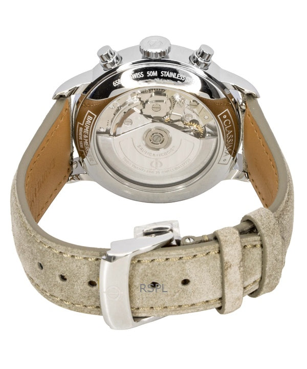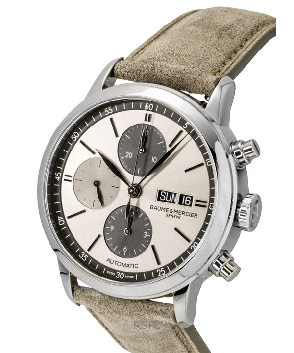 Montre homme Baume & Mercier Classima Chronographe, bracelet cuir, cadran beige, automatique M0A10782