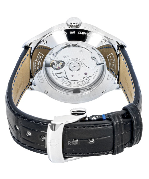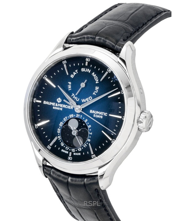 Montre homme Baume & Mercier Clifton, bracelet cuir, phase de lune, cadran bleu, automatique M0A10593
