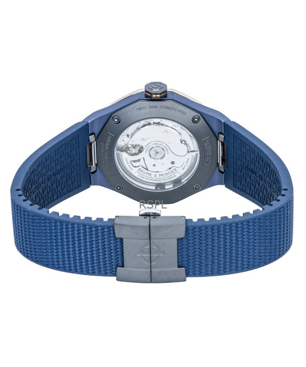 Montre homme Baume & Mercier Riviera, bracelet en caoutchouc, cadran bleu, automatique M0A10769, étanche à 100 m