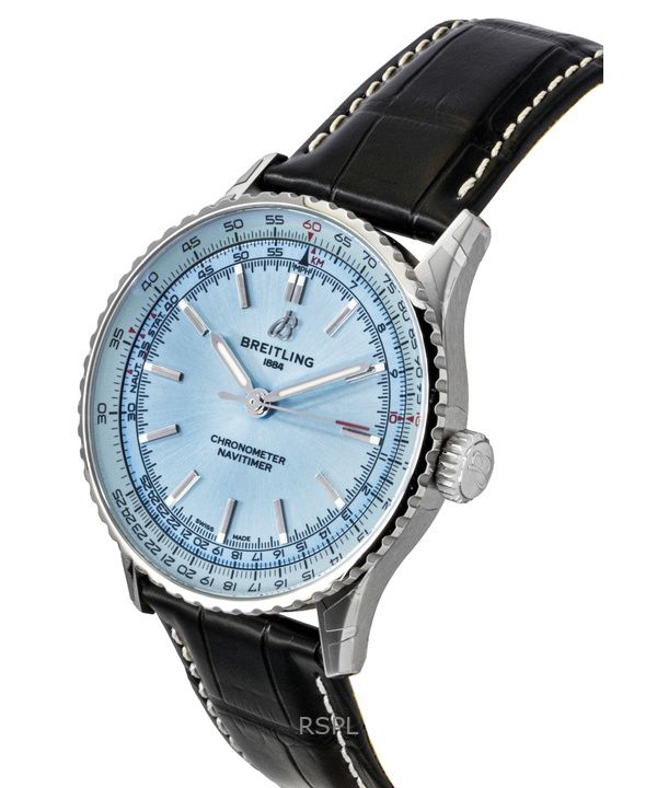 Montre homme Breitling Navitimer automatique avec bracelet en cuir et cadran bleu glacier A17329171C1P1