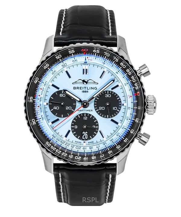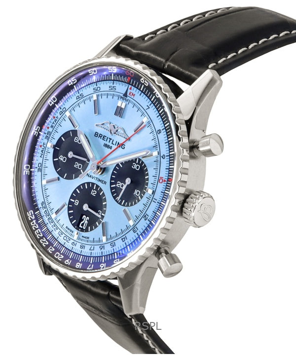 Montre homme Breitling Navitimer B01 chronographe avec bracelet en cuir et cadran bleu AB0138241C1P1