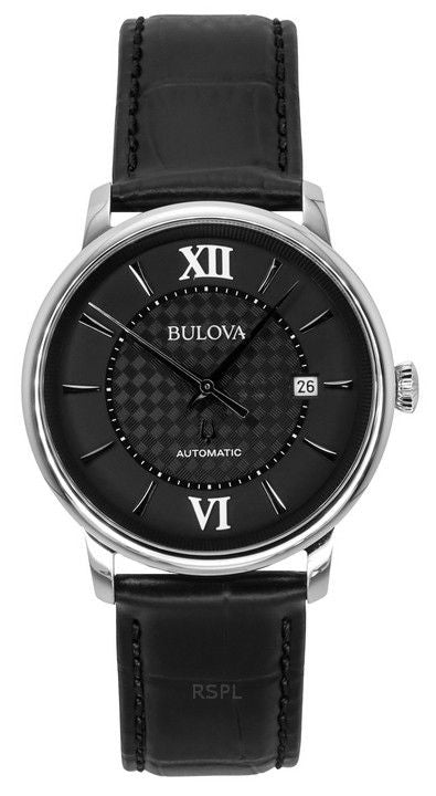 Montre Homme Bulova Analogique Hudson Bracelet Cuir Cadran Noir Automatique 96B441
