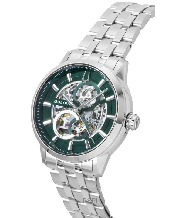 Montre homme Bulova Sutton en acier inoxydable vert squelette automatique 96A329