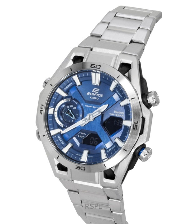 Montre homme Casio Edifice analogique-numérique en acier inoxydable, cadran bleu, solaire ECB-2300D-2A, étanche à 100 m