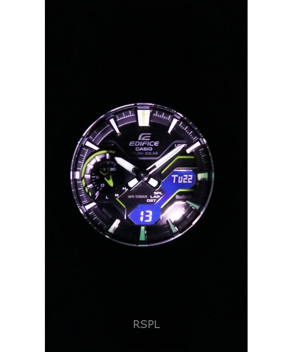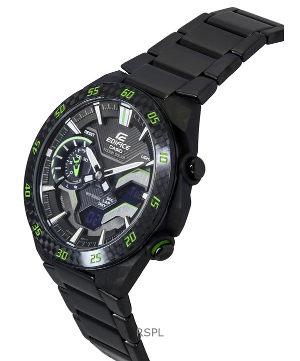Montre homme Casio Edifice Windflow, analogique, numérique, avec bracelet en cuir noir, résistante à l'eau, ECB-2200RC-1A3, 100 m