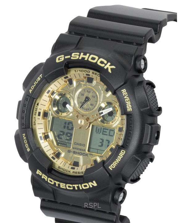 Montre homme Casio G-Shock GA-100GGB-1A9, bracelet en résine, affichage analogique et numérique, cadran doré, mouvement à quartz, étanche à 200 m.