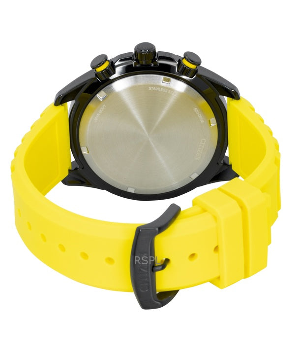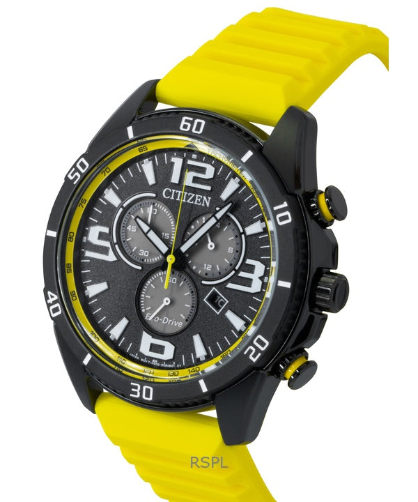 Montre homme Citizen Brycen Chronographe, bracelet en silicone, cadran noir, Eco-Drive AT2585-08E, étanche à 100 m