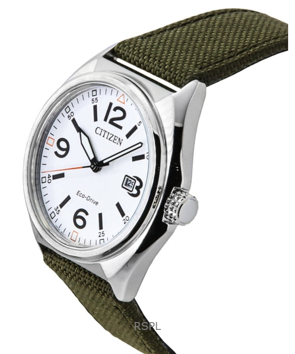 Montre homme Citizen Eco-Drive AW1571-09A, bracelet en nylon vert, cadran blanc, 100 m