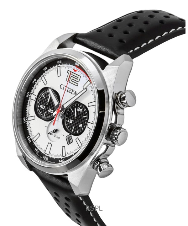 Montre homme Citizen Eco-Drive chronographe avec bracelet en cuir et cadran blanc CA4640-09A 100 m