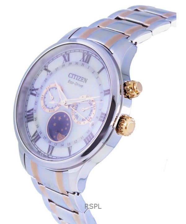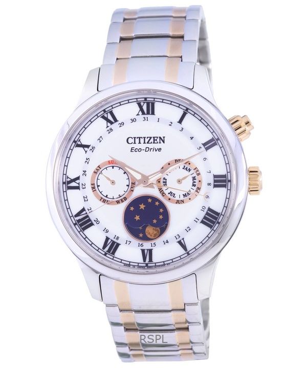 Montre homme Citizen Moon Phase bicolore en acier inoxydable avec cadran argenté Eco-Drive AP1054-80A remise à neuf
