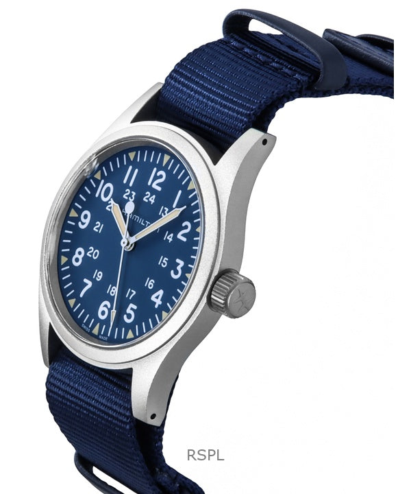 Montre homme Hamilton Khaki Field, bracelet textile, cadran bleu, automatique, H69439940