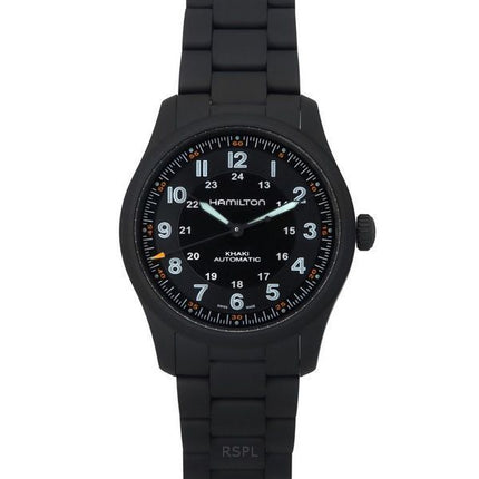 Montre Homme Hamilton Khaki Field PVD Revêtement Titane Cadran Noir Automatique H70215130 100M