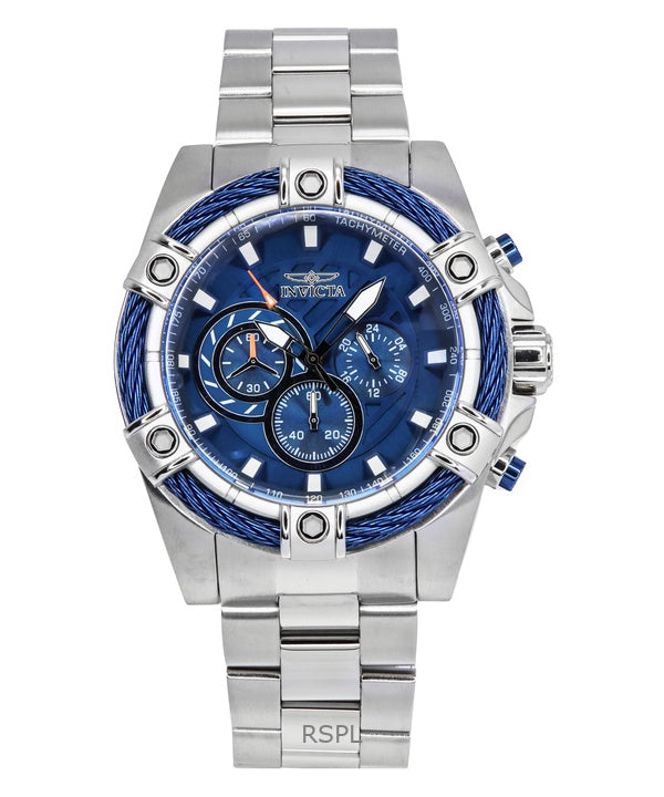 Montre homme Invicta Bolt chronographe en acier inoxydable, cadran bleu, quartz, 25513, 100 m