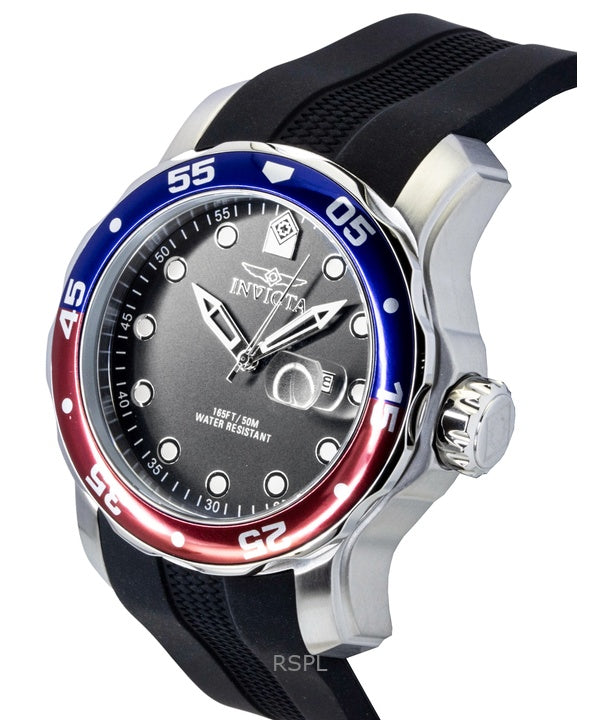 Montre homme Invicta Pro Diver, bracelet en silicone, cadran noir, lunette Pepsi, mouvement à quartz, référence 45735, étanche à 200 m