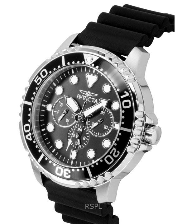 Montre homme Invicta Pro Diver GMT, bracelet en silicone, cadran noir, mouvement à quartz, référence 47234