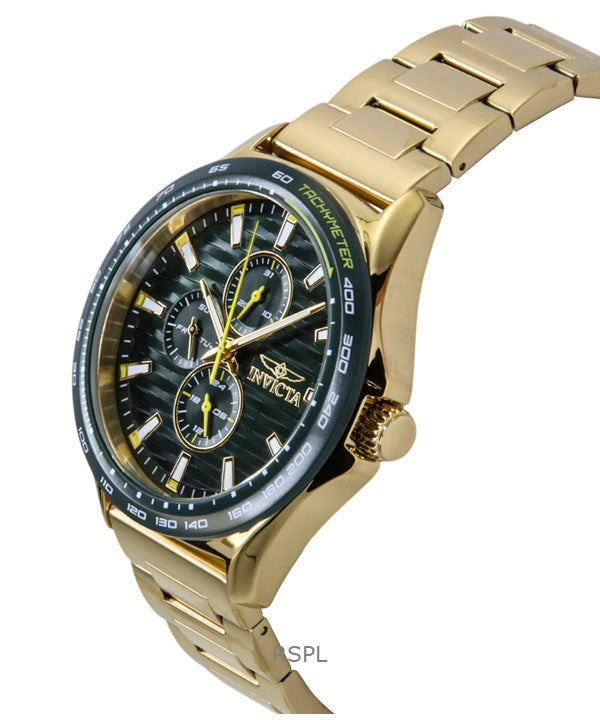 Montre homme Invicta Racing en acier inoxydable doré, cadran vert, quartz, 48870