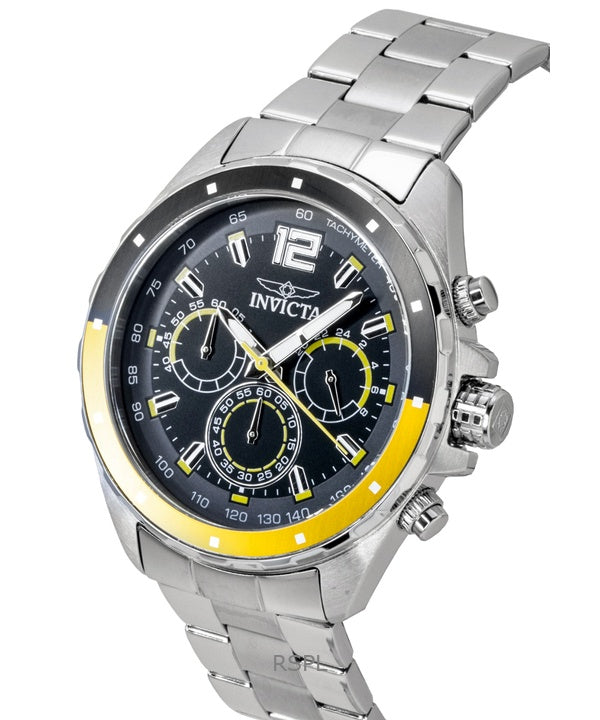 Montre homme Invicta Speedway Chronograph GMT en acier inoxydable, cadran noir, mouvement à quartz 49365
